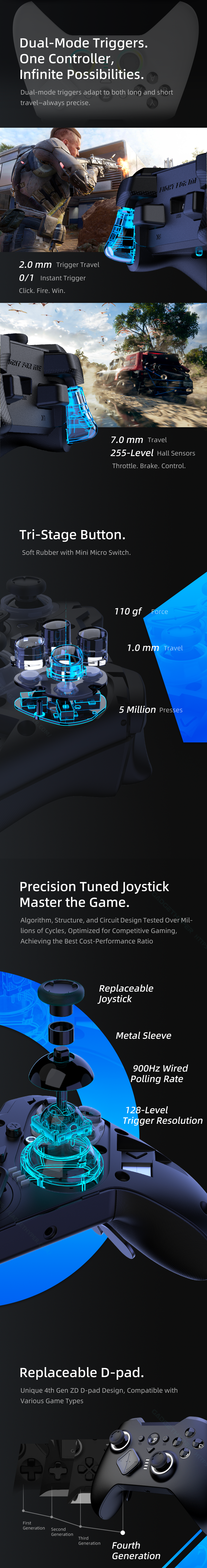 Modular Design Joystick & D-Pad, Personalized Swappable Components - Trigger Mode Switch, Linear Hall Effect & Tactile Mechanical Triggers